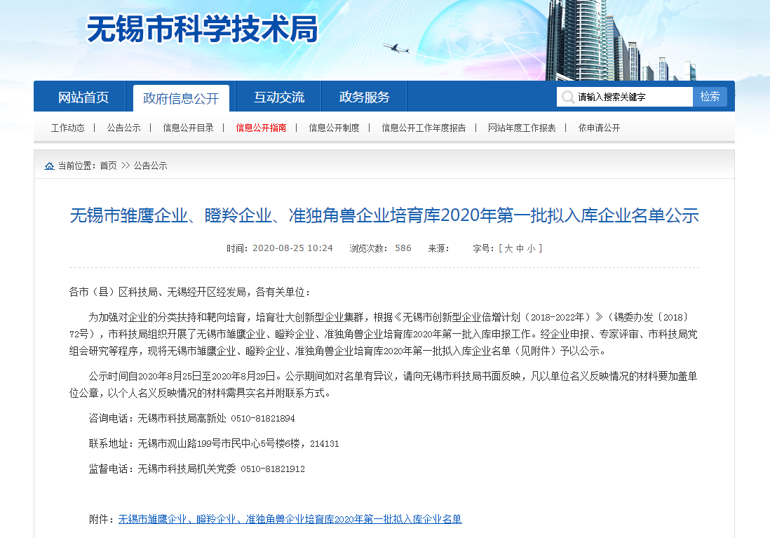 緊接著,8月25日無錫市科學(xué)技術(shù)局網(wǎng)站發(fā)布了關(guān)于無錫市雛鷹企業(yè)、瞪羚企業(yè)、準(zhǔn)獨(dú)角獸企業(yè)培育庫2020年第一批擬入庫企業(yè)名單。據(jù)悉,該計(jì)劃基于無錫創(chuàng)新型企業(yè)集群倍增計(jì)劃而創(chuàng)立,旨在加強(qiáng)對(duì)企業(yè)的分類扶持和靶向培育,培育壯大創(chuàng)新型企業(yè)集群。經(jīng)過層層推薦、評(píng)審、復(fù)核,江蘇海辰云科入選。