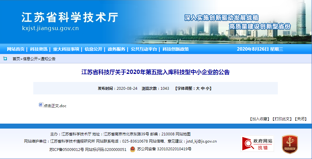 為了推進(jìn)自主創(chuàng)新、加快企業(yè)產(chǎn)業(yè)結(jié)構(gòu)調(diào)整,貫徹落實(shí)國家創(chuàng)新驅(qū)動(dòng)發(fā)展戰(zhàn)略,加大對(duì)科技型企業(yè)的扶持與培養(yǎng),全力助推企業(yè)持續(xù)健康發(fā)展,在各設(shè)區(qū)市評(píng)價(jià)工作機(jī)構(gòu)審核中,江蘇海辰云科入選2020年第五批科技型中小企業(yè)。8月24日江蘇省科技廳關(guān)于2020年第五批入庫科技型中小企業(yè)進(jìn)行了發(fā)布。